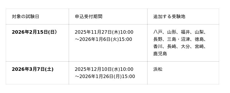 日本でTOEIC Programを実施・運営する国際ビジネスコミュニケーション協会(IIBC)(所在地:東京都中野区中野、理事長:藤沢 裕厚)は、2026年2月15日(日)と3月7日(土)に実施されるTOEIC L&R公開テストで、新たに合わせて13受験地を追加することを決定しました。