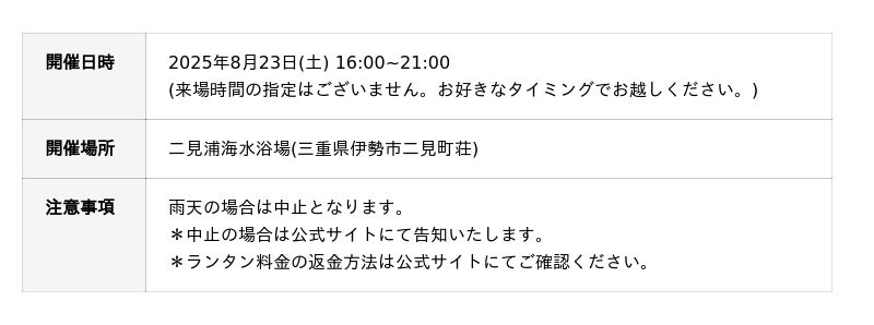 『8/23 伊勢二見ランタン2025』三重県伊勢市二見浦海水浴場にて開催