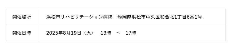 浜松市リハビリテーション病院を会場に、小学生を対象としてリハビリテーションを知ってもらうイベントとなっております。