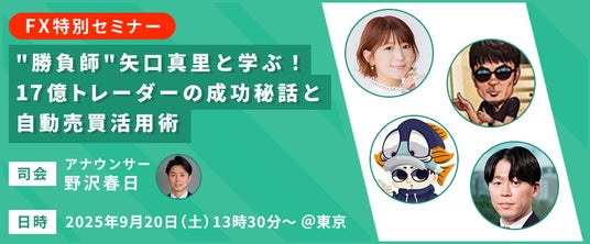 FX特別セミナー開催のお知らせ "勝負師"矢口真里さんと学ぶ!17億トレーダーの成功秘話と自動売買活用術