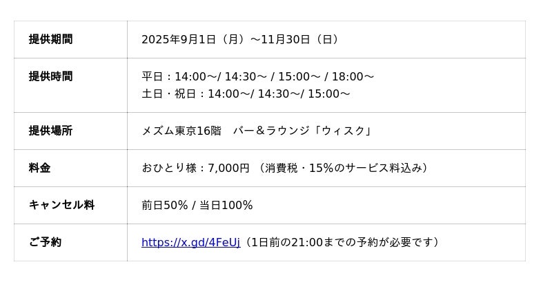 “TOKYO WAVES”をテーマに、アート・音楽・食・デザインが交差する独創的な体験を創出してきたメズム東京では、本企画を通じて国内外のゲストに“五感で日本を再発見”していただく体験を提供します。「すみだ北斎美術館」とのコラボレーションによる“後期”のアフタヌーンティープログラムに引き続きどうぞご期待ください。