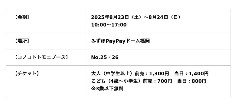 弊社お知らせ記事:https://konokototomoni.com/shop/news/pethakufukuoka2025/