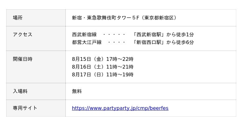 株式会社IBJ(代表取締役社長:石坂 茂、本社:東京都新宿区、東証プライム:6071)が運営する「IBJ Matching」は、2025年8月15日(金)~17日(日)の3日間、新宿「東急歌舞伎町タワー」5階プールサイドにて、「大人のかき氷フェス」を開催いたします。会場では、ドリンク・フードを豊富にご用意。さらに、独身者向けマッチングイベントも同時開催し、「夏の出会い」と「ひんやり贅沢スイーツ」が一度に楽しめる空間を提供します。入場は無料で、事前購入でお得になる“早割ドリンクチケット”も販売中です。新宿「東急歌舞伎町タワー」でしか味わえない大人の夏体験を、ぜひご堪能ください。