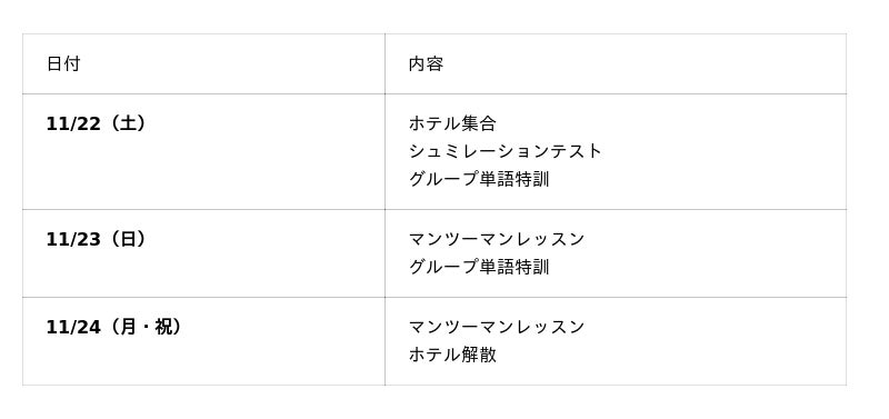 【POINT3】英語漬けの合宿形式で集中特訓を実現
