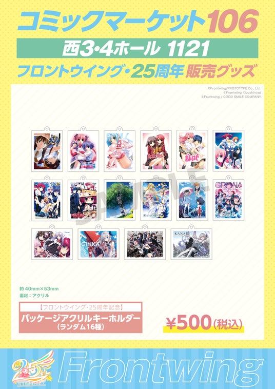 2つ目は、フロントウイングの主要なゲーム作品がラインナップされた「パッケージアクリルキーホルダー(ランダム16種)」
