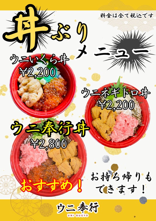 どんぶりメニューはウニを定番に、様々なバリエーションをお楽しみください!