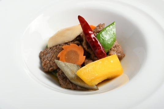芳醇な香りとキレのある辛さが特徴の牧場唐辛子と、柔らかな牛肉を炒め合わせました。