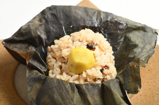 ホクホクの牧場栗と、東北牧場にて無農薬で育てた香り高い陸稲を蓮の葉で包んで蒸し上げた、贅沢なちまきです。