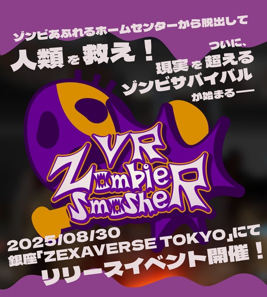 株式会社ツクリエ(本社:東京都千代田区 代表取締役:鈴木英樹 以下、ツクリエ)が東京都から受託運営する東京コンテンツインキュベーションセンター(以下、TCIC)に入居している株式会社デジタルリージョン(本社:東京都、代表取締役:石田 精一郎)は、アミューズメント施設向けに自社開発した新作VRゲーム『VR Zombie Smasher(ブイアール・ゾンビ・スマッシャー)』のリリースを記念し、KATVR JAPANおよびZEXAVERSE TOKYOの協力のもと、2025年8月30日(土)に銀座「ZEXAVERSE TOKYO」にてお披露目イベントを開催いたします。