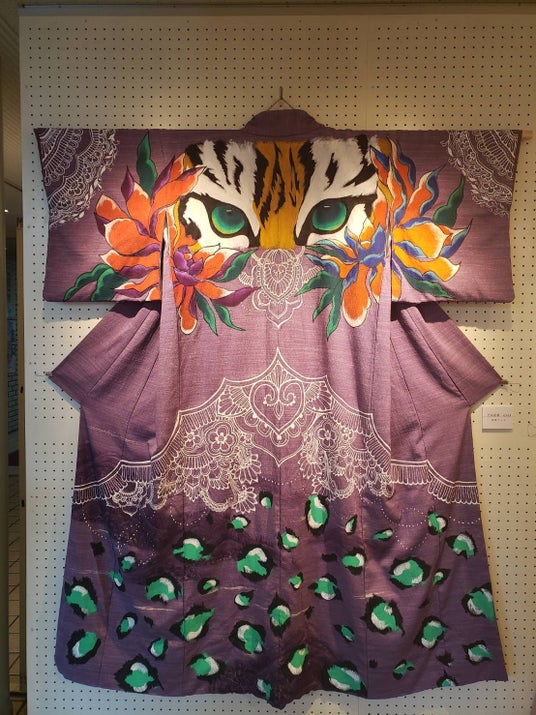 本展の中心となるのは、「着物に、もう一度命を。」というコンセプトのもと創作されたSUN氏の代表シリーズ「KIMONO ART」。