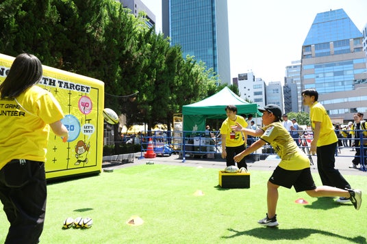 ラグビーならではの楕円球の難しさや、うまく蹴れたときの達成感を体感できます。