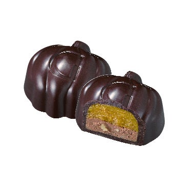 パンプキンウォルナッツ& アーモンドプラリネくるみの食感がしっかり残るウォルナッツ&アーモンドプラリネに、風味豊かなかぼちゃとオレンジのガナッシュを重ね、ダークチョコレートで包みました。甘すぎず、大人っぽい味わいです。