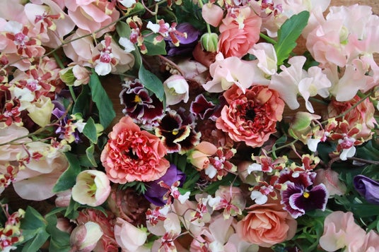 Florist辻氏がその場でオリジナルブーケを制作。お花は1本からご購入いただけます。