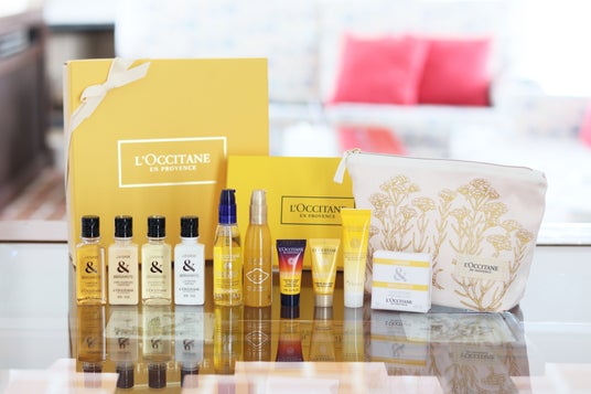 お部屋にはロクシタンのホテル限定アメニティセットとともに、シャンプーやボディミルクなど心と体を癒してくれる香りと使い心地満点のアイテムもご用意いたします。さらに、ロクシタンのギフトボックスを特典としてお渡ししますので、旅の思い出にもぴったりです。