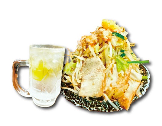 メガハイボールと二郎系メガ盛り野菜炒めの「メガ晩酌セット」980円