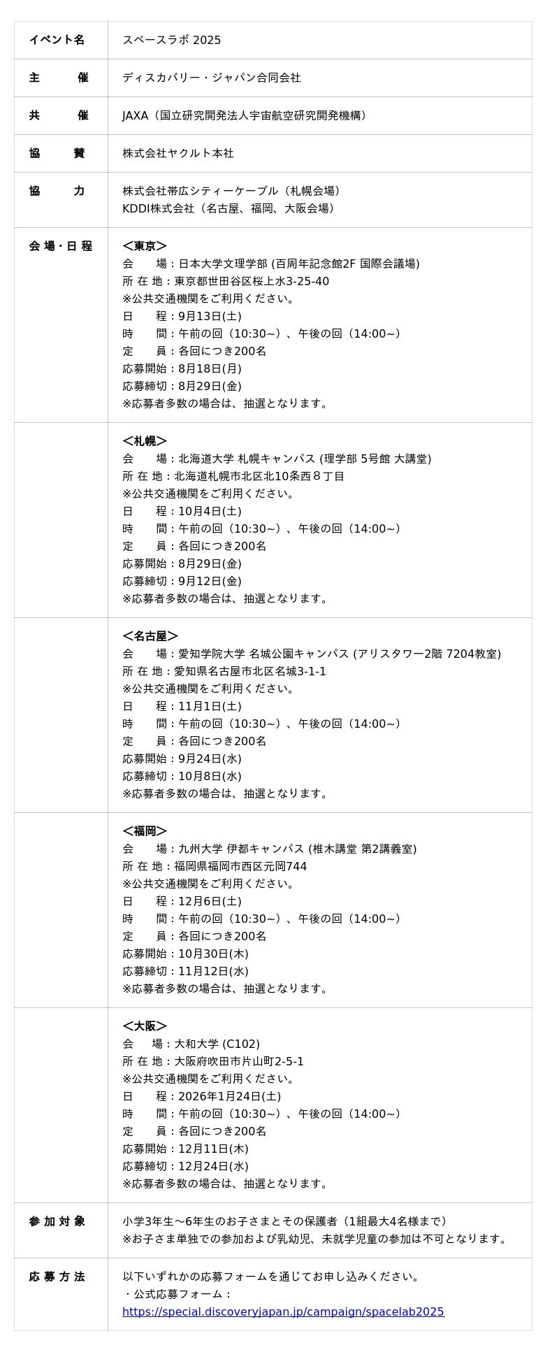 特設サイト(https://special.discoveryjapan.jp/campaign/spacelab2025)にて、参加応募を受け付けています。