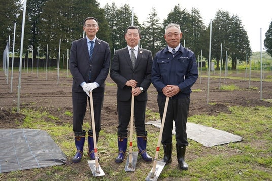 2025年5月14日、りんご生産者サポートの開始にあたり、青森県弘前市のJAつがる弘前管轄園地でりんごの苗木の植樹を行いました。