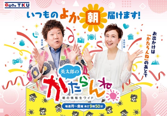 2013年4月スタートした、熊本ですっかりおなじみ、TKU平日朝帯の情報生ワイド番組。タレント英太郎とTKUアナウンサー本田千穂が絶妙な掛け合いで番組を進行。旅、グルメ、生活などその日の午後に使える特集コーナーと地域、夫婦、家族など県内の人々にスポットを当てたハートフルコーナーを放送中!他にも、メールやFAXを使って、視聴者が参加するコーナーもあります。番組スタートから12年連続同時間帯視聴率TOPを獲得しています。