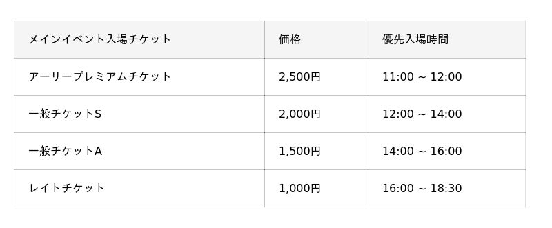 ・本イベントでは、優先入場できる時間帯別に、4種類のチケットをご用意しています。