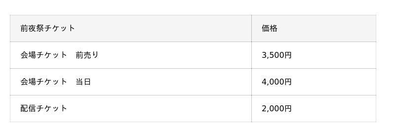 ■前売りチケット:3,500円 / 当日チケット:4,000円