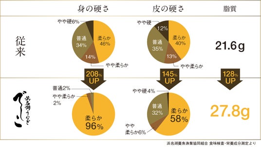 当組合で従来の国産うなぎなどの比較を行った結果、「でしこ」の特徴が明確に評価されました。
