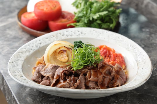 MYDOのランチメニューで人気を集める「すき焼き御膳」を、Shun氏ならではの感性でアレンジ。甘辛い割下にフレッシュなトマトの酸味を加えることで、奥行きのある味わいと爽やかな余韻を両立させました。伝統的なすき焼きの旨みと、トマトのジューシーな風味が絶妙に絡み合う、新しいスタイルの御膳です。
