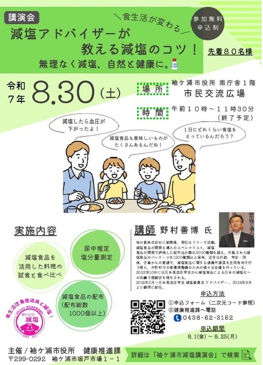 【千葉/袖ケ浦】「減塩アドバイザーによる講演会」を開催します!
