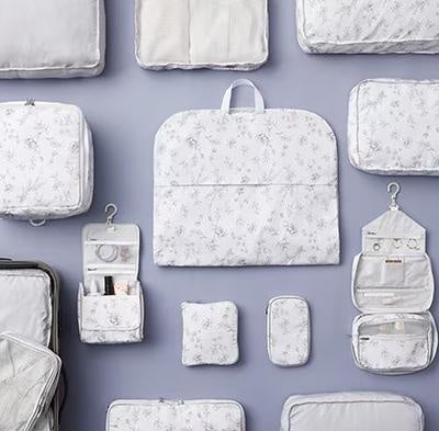 トラベル用品もラインアート柄で統一できます♪上品なアイテムで旅支度も楽しく。肌・髪のダメージを優しく守る人気のシルクシリーズは、くすみカラーがラインアートと相性抜群。
