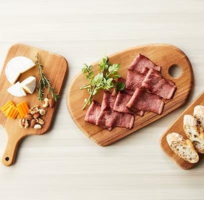 木目がおしゃれなカッティングボードは、プレートとしてそのまま食卓に出せる便利アイテムです。
