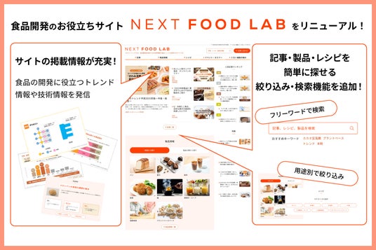 ミヨシ油脂株式会社(本社:東京都墨田区、代表取締役社長兼CEO:三木逸郎)は、7月30日(水)に食品開発担当者のための技術情報や食品トレンドを発信するサイト「ネクストフードラボ」をリニューアル公開しましたのでお知らせします。