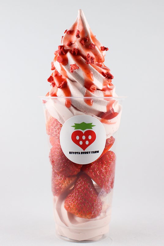 札幌市の自社農園で育てた、酸味と甘みのバランスが良いいちご「すずあかね」を贅沢に詰め込んだパフェ。いちごとソフトクリームだけのシンプルな味わいです。