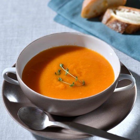 トマトが濃厚でフレッシュな酸味が心地よいスープ福岡の地から届くのは、女性たちが手がける安心安全な素材とレシピによる野菜スープ。ミネラル豊富な土で育った桃太郎トマトを収穫当日に加工、自家製ブイヨンでのばして旨みと栄養を凝縮したフルーティな甘みの後にやわらかな酸味が広がり、滋味が沁み入るおいしさです。