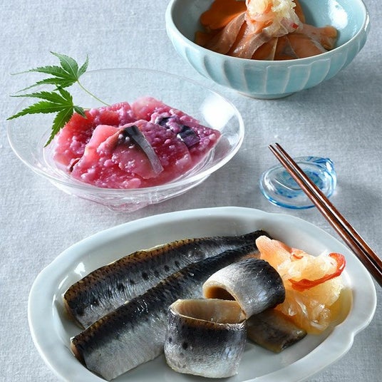 富山県南砺市の地で育まれた発酵食新鮮なイワシとサクラマスは、調合酢に漬けてマリネに。米酢や玉ねぎの自然な甘みと魚の旨みが調和して、品よく旨い。糀漬けは、サバと紅芯大根の食感の対比、発酵によるまろやかな味わいが印象的。3種とも添加物不使用。爽やかでやさしい食べ心地が実にいいのだ。