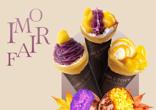 とろけるクレープの MOMI&TOY'S は、秋の味覚「さつまいも」を贅沢に使用した、3種類のお芋たっぷりクレープを期間限定で販売します!
