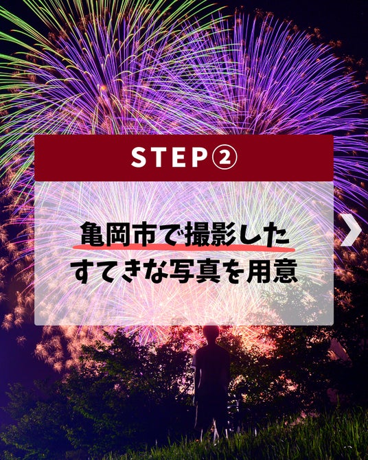 - 亀岡市公式アカウント(@kameokacity)をフォロー- 亀岡市で撮影したすてきな写真を用意