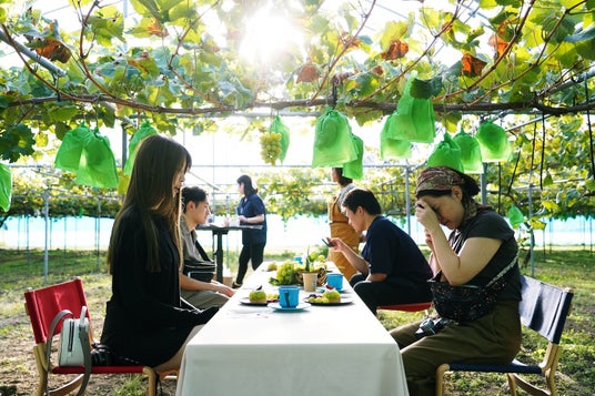 贈答用シャインマスカット畑でアフタヌーンティーツアーの様子