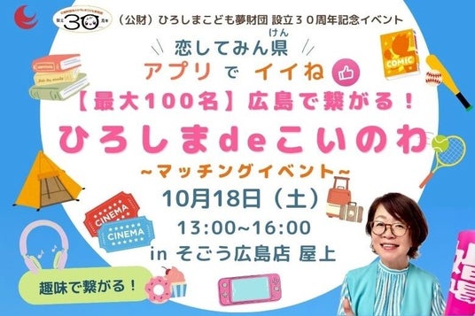 ■イベント名: 「ひろしまdeこいのわ」~広島で恋してみん県~■開催日時: 2025年10月18日(土) 13:00~16:00