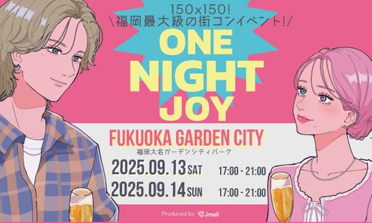 運営実績24年以上のマッチングサービス「Jメール」(運営:有限会社エムアイシー総合企画 本社:福岡県福岡市 代表取締役:榮広輔)は、150×150の街コンイベント!ONE NIGHT JOYを開催します!福岡大名ガーデンシティパークを貸切り、美味しいお酒やグルメを楽しみ、会場には特設ステージにて「よしもと芸人」が皆様の出会いを応援します!!