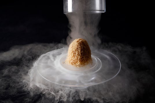 ほどけるようなふわっと軽やかな食感が特徴のモンブランは、オーダー毎にマロンクリームを絞って仕上げます。中に閉じ込めたマロングラッセとアイスクリームとのハーモニーをお楽しみいただけます。また、「モンブラン」の名前の由来であるフランス語の「白い山」からインスピレーションを受けたドライアイスの演出も必見です。