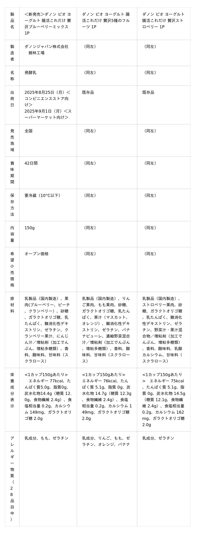 ダノンジャパン株式会社(本社:東京都目黒区、代表取締役社長:ロドリゴ・リマ)は、100倍胃酸に強く※1、生きて腸まで届くBE80菌を配合した「ダノン ビオ(R)」ブランドより、「ダノン ビオ ヨーグルト 腸活これだけ 贅沢ブルーベリーミックス」を新発売します。「腸活これだけ」シリーズの新フレーバーとなる当製品は、フルーツヨーグルトの中でも特に人気の高いブルーベリーをベースに、食感と味わいの異なるピーチとクランベリーを組み合わせ、贅沢な果肉感を楽しめるヨーグルトに仕上げました。2025年8月25日(月)より全国のコンビニエンスストア向けに、9月1日(月)より全国のスーパーマーケット向けに出荷を開始します。