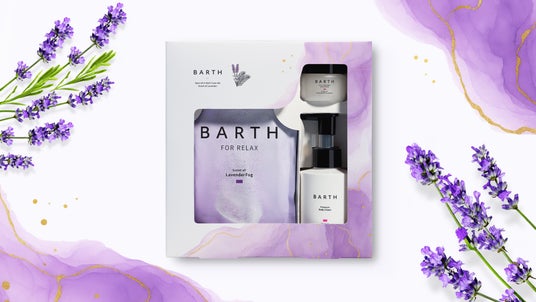ラベンダーなどの天然精油(※6)をバランスよくブレンドした薬用中性重炭酸入浴剤RELAX LavenderFog(3回分)に、ボディクリームとスクラブのミニサイズがついたセット。就寝前の気分のリラックスに。