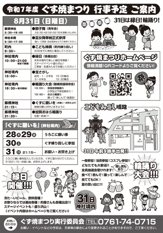 問い合わせ:ぐず焼きまつり実行委員会(動橋町民会館)0761-74-0715