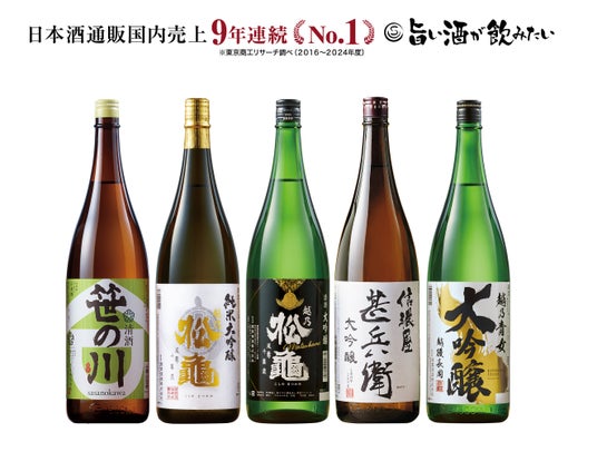 9年連続1位を記念し、今年もお客様の投票で旨い酒No.1を選ぶ「旨い酒グランプリ」より、1~5位に選出された人気酒のセット「9年連続1位記念!大人気5銘柄飲みくらべセット」が新登場。この機会に、お客様よりご好評いただいた人気商品をぜひご堪能ください。
