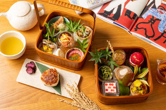 柚木沙弥郎氏の原画展『旅の歓び、旅の色彩』に合わせ、旅から得たインスピレーションを表現した特別なアフタヌーンティーをご用意いたしました。柚木氏が旅した世界各国を巡るような趣向を凝らしたセイボリーと、京都の老舗「一保堂茶舗」の上質な抹茶やほうじ茶を贅沢に使用したスイーツの数々をお楽しみいただけます。本アフタヌーンティーでは、コーヒー、紅茶、そして一保堂のお茶が飲み放題で提供されます。生前、お茶の時間をとても大切に、そして楽しみにしていたという柚木氏の世界観を、心ゆくまでご堪能ください。