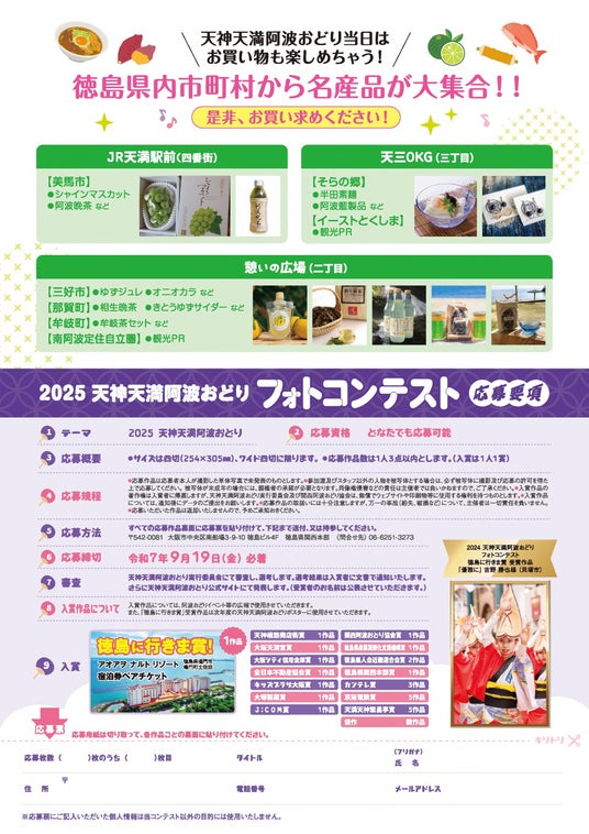 日本一長い商店街「天神橋筋商店街」と、日本三大祭りのひとつ天神祭で有名な「大阪天満宮」が阿波おどりの熱気に包まれる、関西最大級の阿波おどりイベント「天神天満阿波おどり」を開催します!!