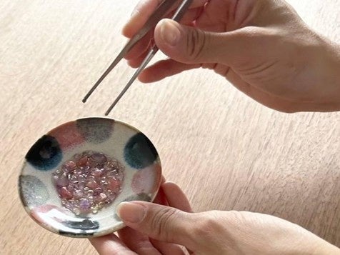 <現代アート:長谷川 理恵>美濃焼 豆皿美濃焼の豆皿にパワーストーン、アルコールインク、モデリングペーストを融合した長谷川理恵の作品。偶然性と立体感が生む軽やかな表情は、日常に寄り添い、使うたびに心を満たす“使える”アートです。24,000円