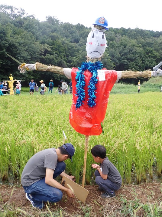 入間市の里山で昔ながらの米づくり体験 9月7日は案山子づくりでにぎわう