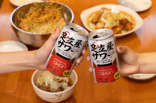 新商品『足立屋サワー』(アルコール分5%)は、泡盛のなかでも特に飲みやすい『菊之露akari』を使用。爽快なソーダ割りで誰でも飲みやすい味わいに仕上げることで、普段泡盛をあまり飲まない方にも手に取っていただきやすくなっています。足立屋の大衆的な酒場の雰囲気を、自宅でも気軽にお楽しみいただきたい一本です。開発・コラボ背景