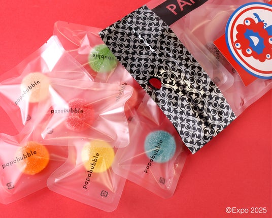 Craft Candy Theater「PAPABUBBLE/パパブブレ」は、2025年日本国際博覧会(大阪・関西万博)公式ライセンス商品として、公式キャラクター・ミャクミャクとのコラボレーション商品を、8月20日(水)より全国店舗及びパパブブレ公式サイト(https://papabubble.co.jp/collections/myakumyaku_papabubble)にて発売いたします。