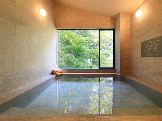 大涌谷と早雲山からの混合泉の塩化物泉を堪能できる<大浴場>